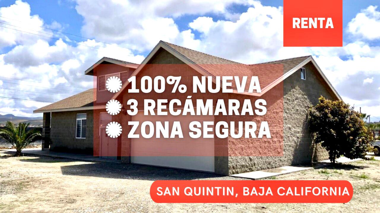 En renta casa de 3 recamaras, 2 baños, garaje doble, excelente ubicación y en zona muy segura. Col. Vicente Guerrero Baja California México. Cuenta con su cuarto de lavado, y en segundo piso un área de estar o de TV.