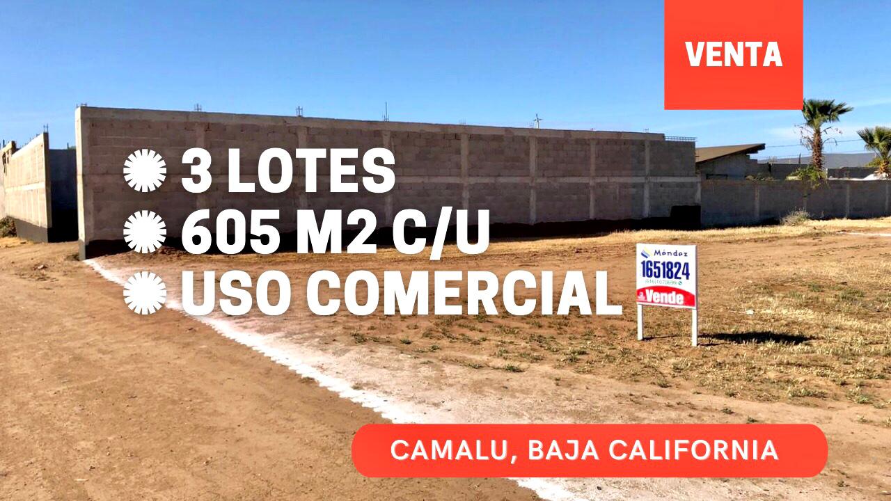 En venta 3 lotes con uso comercial en la Col. Lázaro Cárdenas del Rio en Camalu Baja California México.