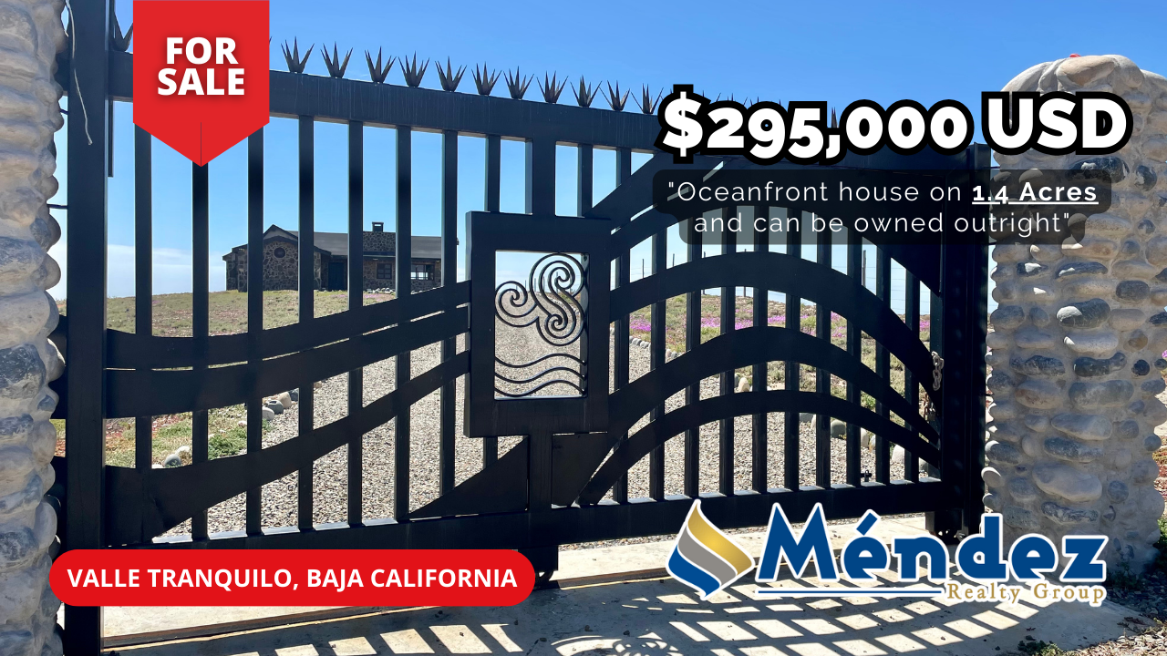 1,432 sq ft oceanfront stone house for sale with 3 bedrooms, 2 bathrooms, living room with fireplace and laundry room. This property sits on 1.4 acres of land with 200 feet of oceanfront providing privacy. This house sits 36 ft away from the bluff providing a great view to the pacific ocean and beach access is just a 325 yard walk from the house. It is located in a local fishing community known as Valle Tranquilo (“Quiet Valley”) in Baja California México.