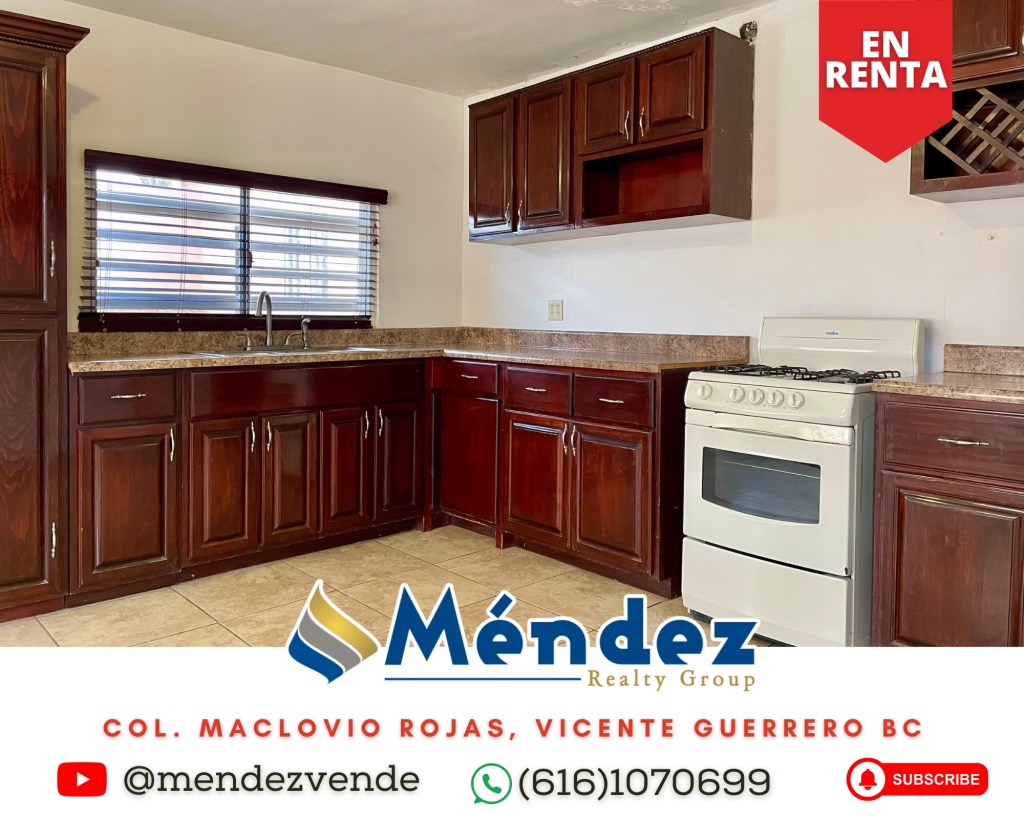 En renta casa muy céntrica de 3 recámaras y 2 baños con patios amplios y bardeados y garaje para 2 carros. Esta casa está a solo 40 mts de la Ave. Pipila que ya está pavimentada y a 5 minutos del centro de Vicente Guerrero BC.