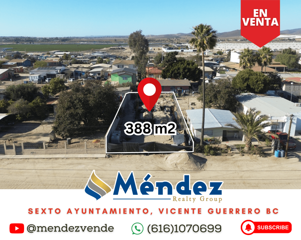 UBICACIÓN: Este terreno en venta está sobre la Avenida “Bibiano Aguilar” Col. Sexto Ayuntamiento, Vicente Guerrero Baja California CP 22920.