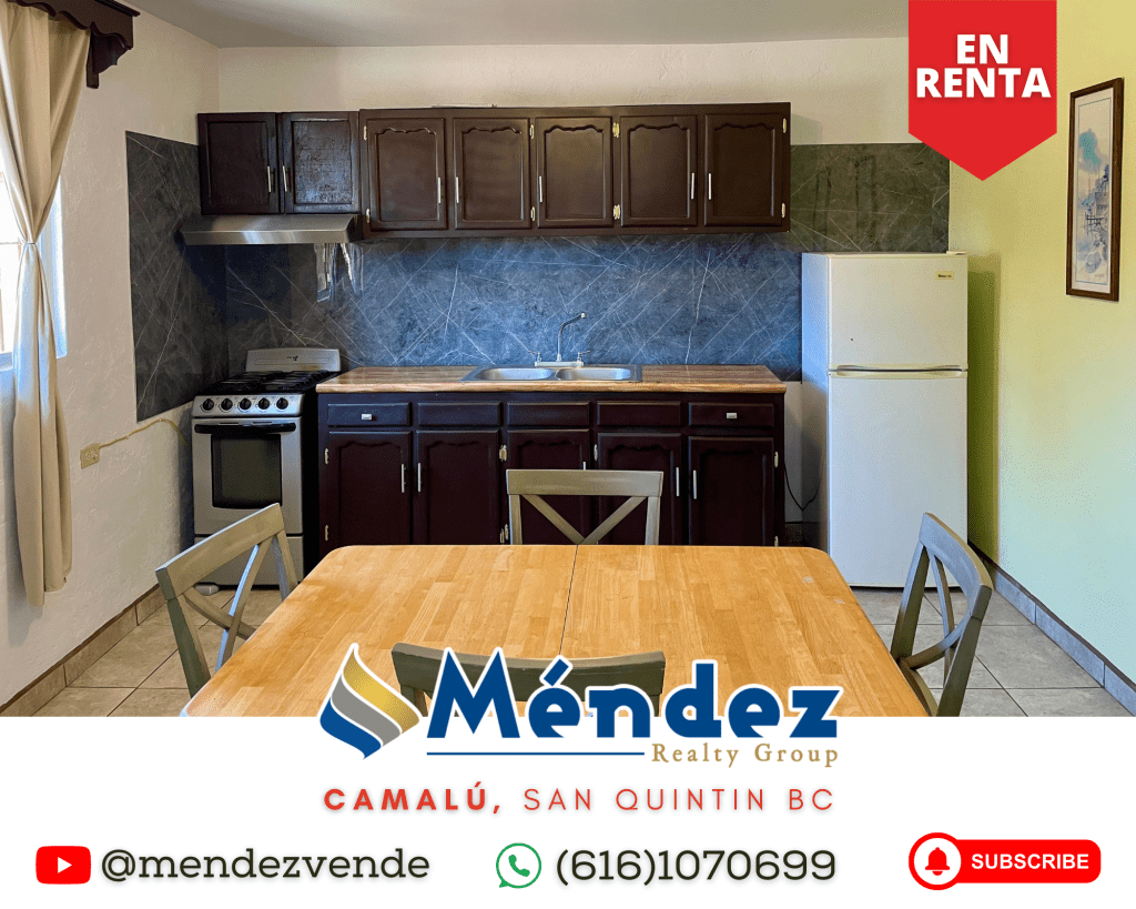 En renta departamentos completamente amueblados, limpios y espaciosos. Estos departamentos son de 1 recámara y 1 baño, cuentan con comedor, patio bardeado para 2 carros ubicados en Camalu Baja California.